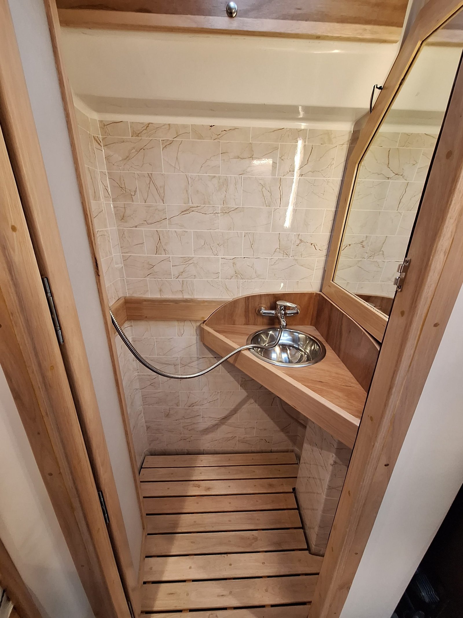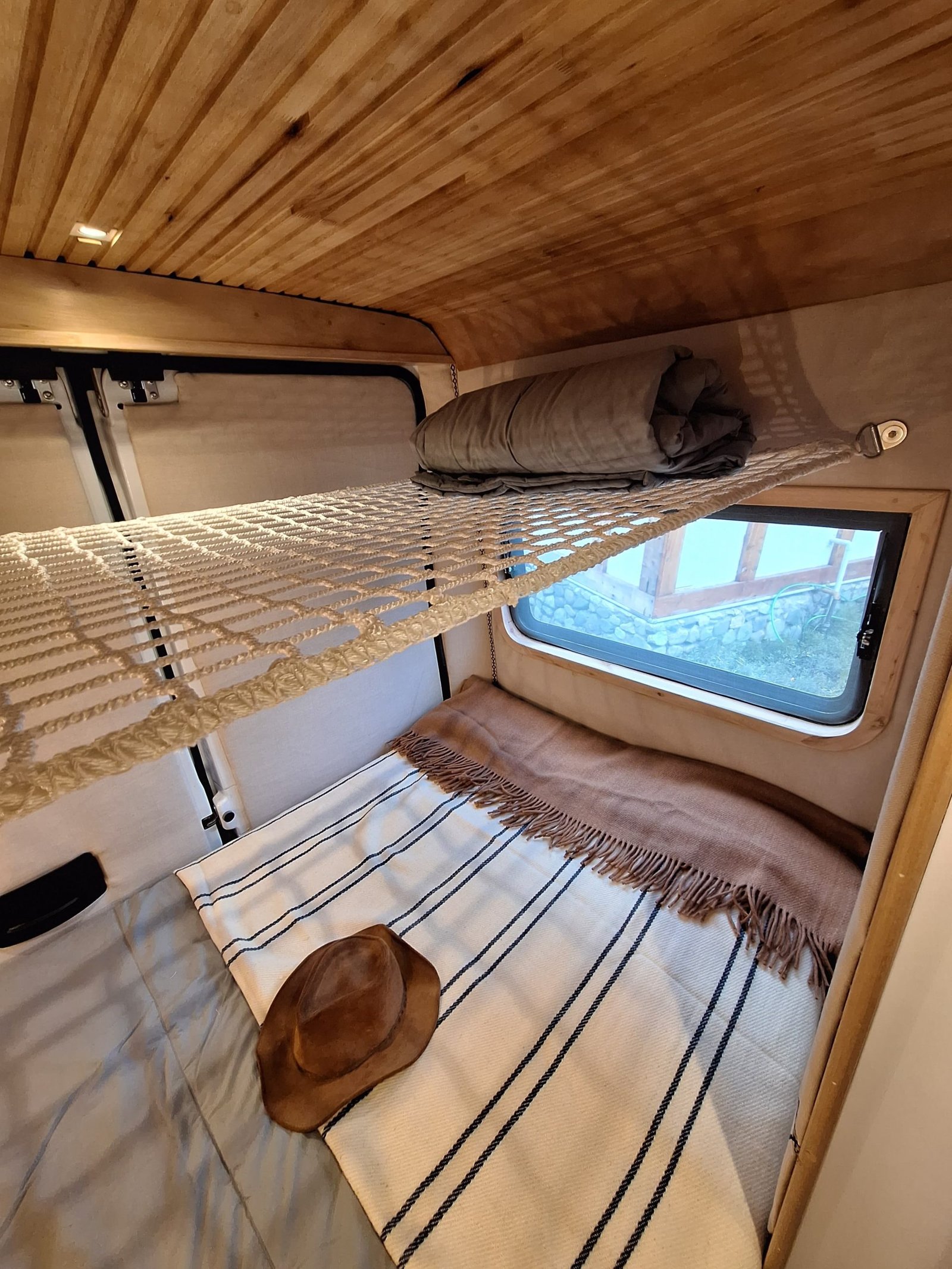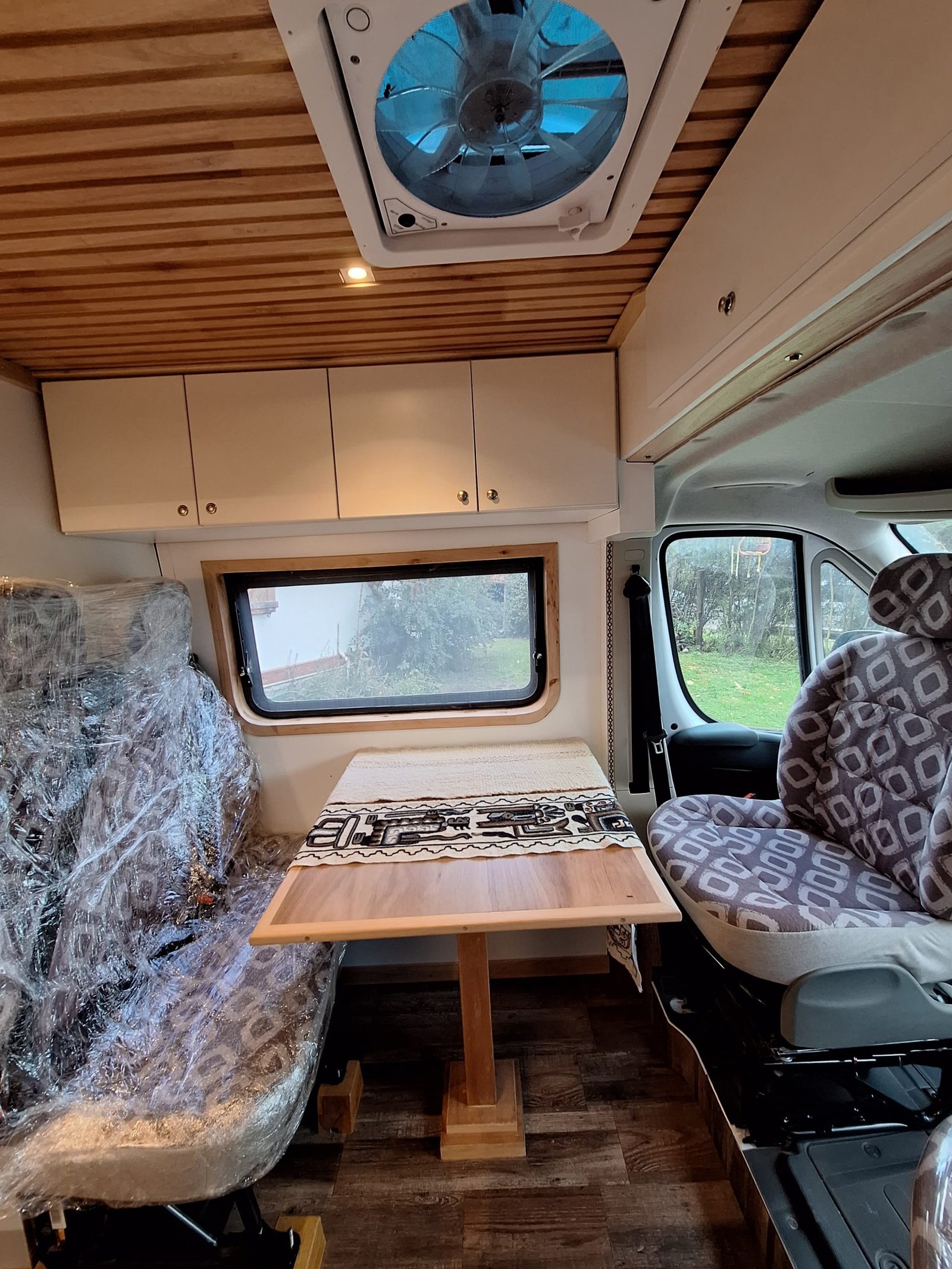 Conductor Para girar la butaca del conductor a la posición de “comensal”, se debe deslizar la butaca completamente hacia adelante, con la varilla que está por delante y debajo del asiento de la butaca; colocar en forma vertical (90°) el respaldo, con la perilla que se encuentra en el costado del respaldo; bajar la palanca del freno de mano (tomando las precauciones del caso, si el motorhome está estacionado en un terreno desnivelado). Luego, accionar la palanquita roja de bloqueo de giro, que se encuentra en la parte inferior derecha de la butaca. Ahora ya se puede girar la butaca en sentido antihorario, cuando llegue a la posición de “comensal”, se fijará sola, trabándose en la posición exacta. Esta butaca no tiene regulación de posición (en el plano horizontal), que no sean las posiciones de conducción y de “comensal”.
